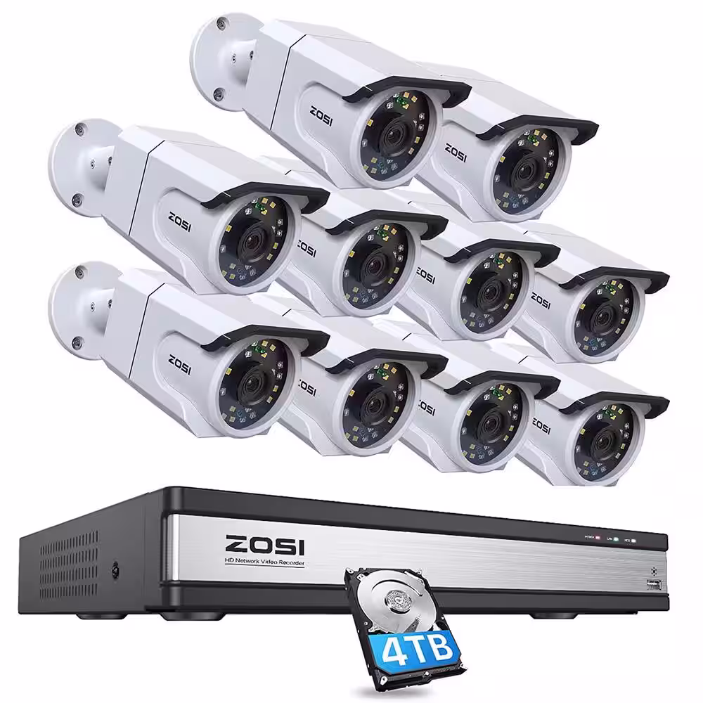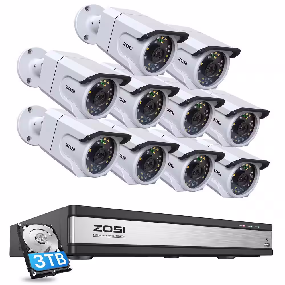 ZOSI 16-Channel 4K UHD 3TB NVR POE Security Camera System with 10-Wired 8MP Outdoor Surveillance Cameras, Audio Recording