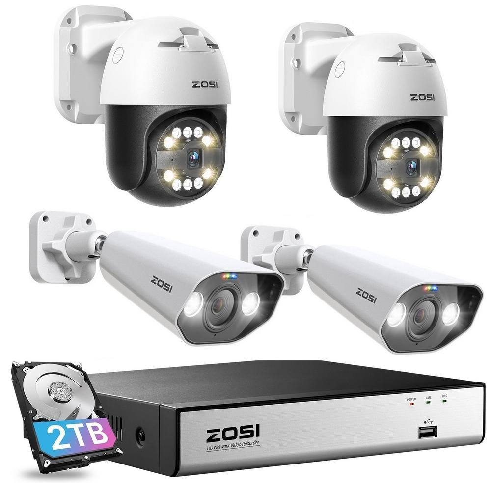 ZOSI 4K 8-Channel 2TB POE NVR Security Camera System with 4 Wired 5MP PTZ Bullet Outdoor Cameras, Person Vehicle Detection