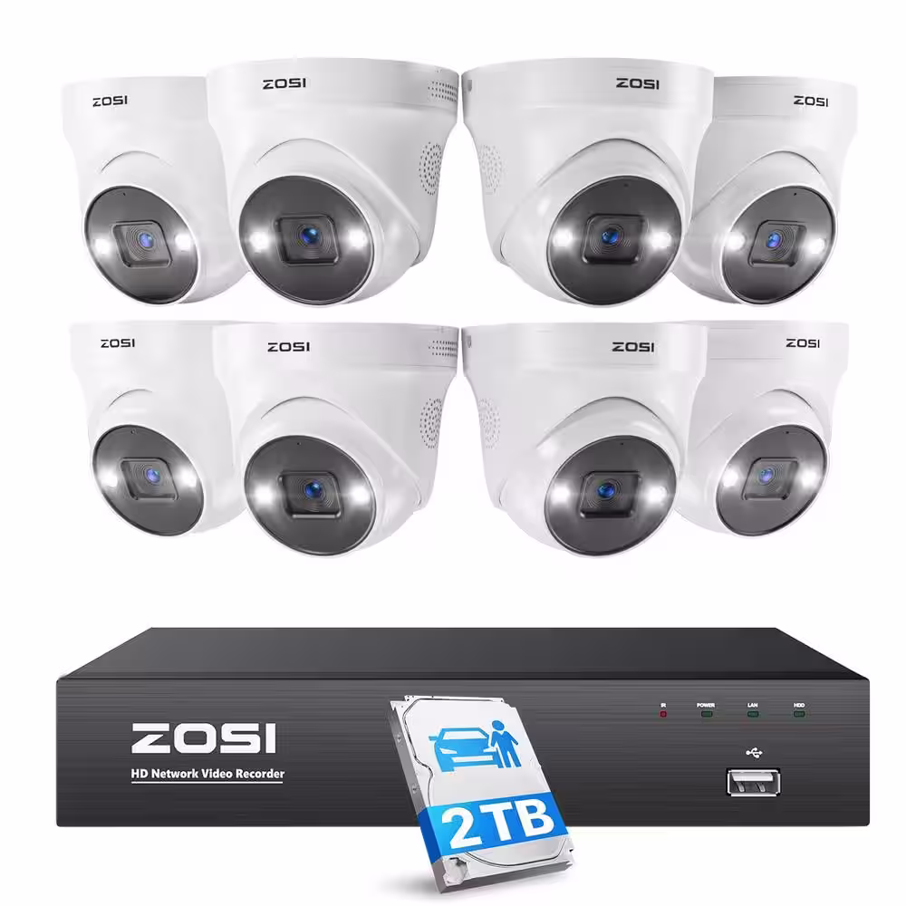 ZOSI 4K 8-Channel POE 2TB NVR Security Camera System with 8 Wired 5MP Outdoor Cameras, Smart Human and Car Detection
