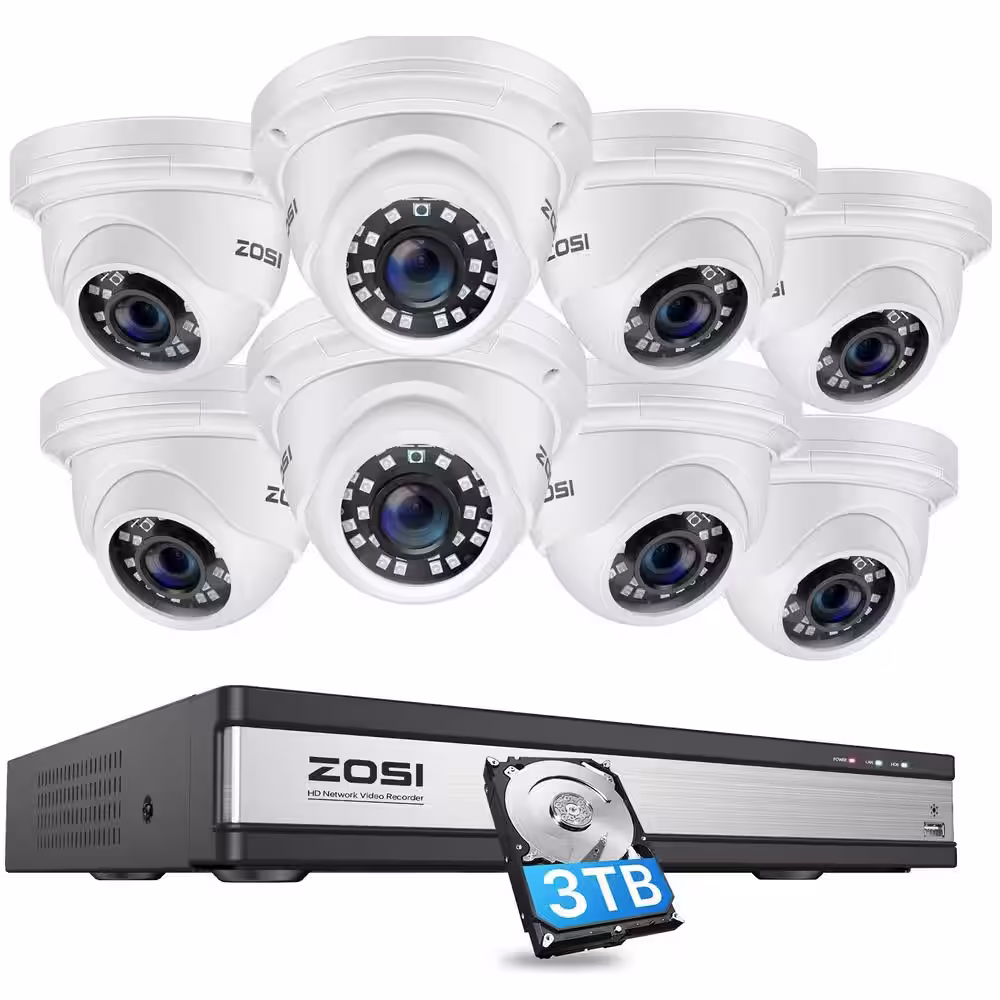 ZOSI 4K POE 16-Channel 3TB Hard Drive NVR Security Camera System with 8 Wired 5MP Outdoor IP Dome Cameras