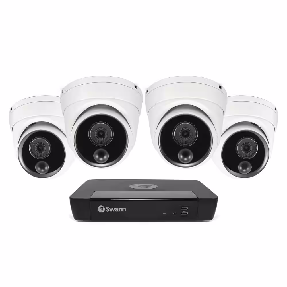Swann Master 4K, 8-Channel, 4-Dome Camera, Indoor/Outdoor PoE Wired 4K UHD 2TB HDD NVR Security Surveillance System