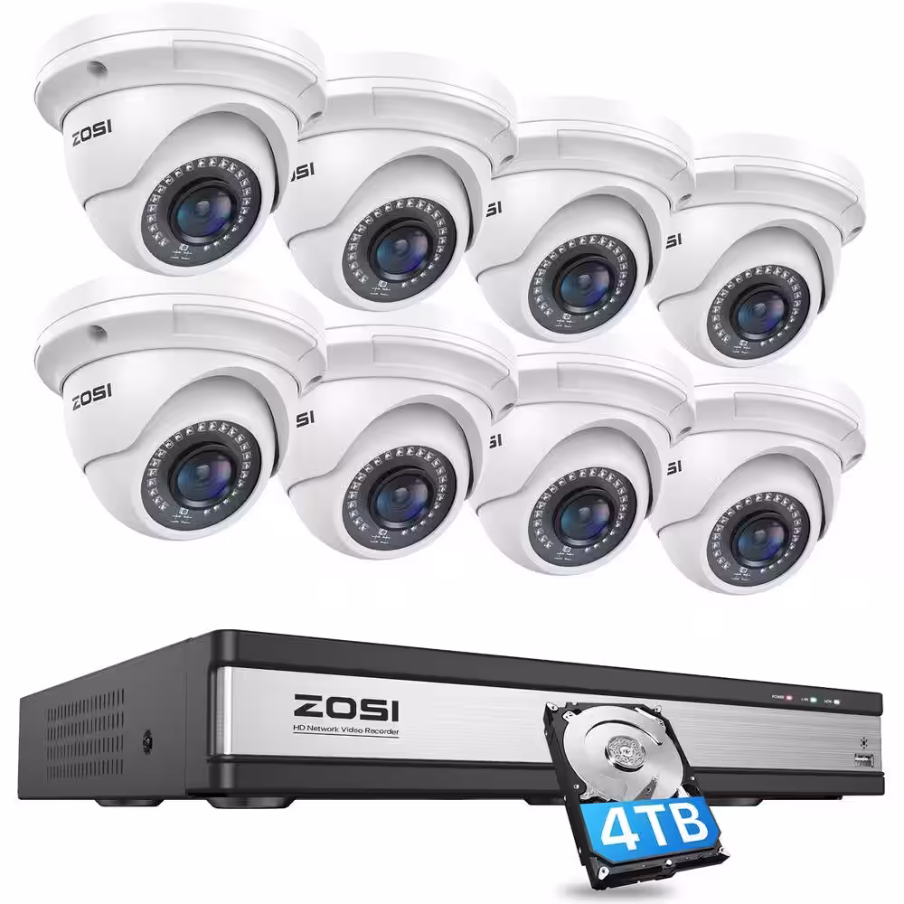 ZOSI 4K UHD 16-Channel POE NVR Security Camera System with 4TB HDD and 8 Wired 5MP Outdoor/Indoor IP Dome Cameras
