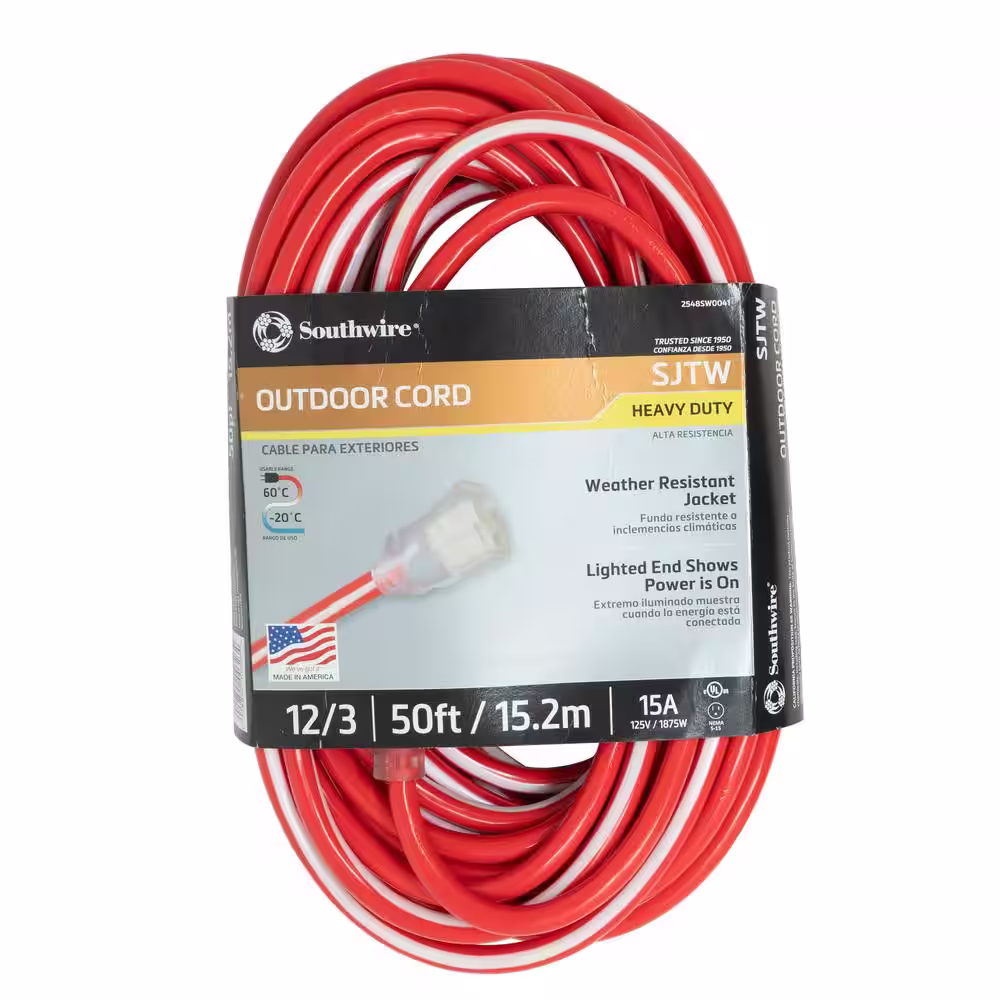 Southwire 50 ft. 12/3 SJTW Hi-Visbility Multi-Color Outdoor Heavy-Duty Extension Cord with Power Light Plug