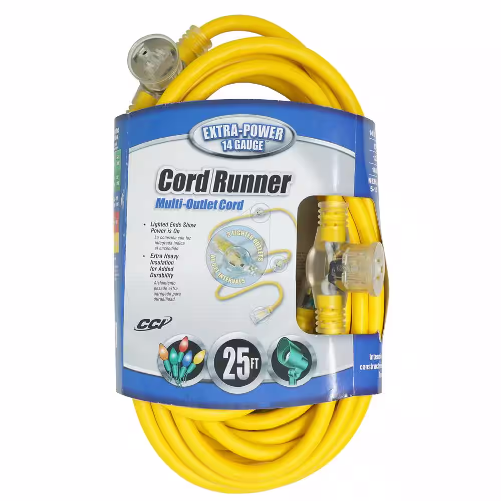 Southwire 25 ft. 14/3 STW Multi-Outlet (3) Outdoor Medium-Duty Extension Cord with Power Light Plugs