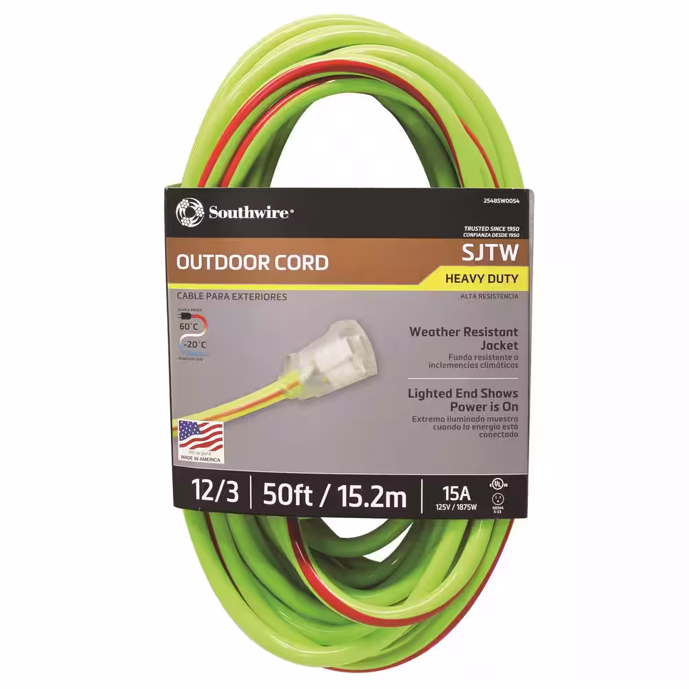 Southwire 50 ft. 12/3 SJTW Hi-Visbility Multi-Color Outdoor Heavy-Duty Extension Cord with Power Light Plug