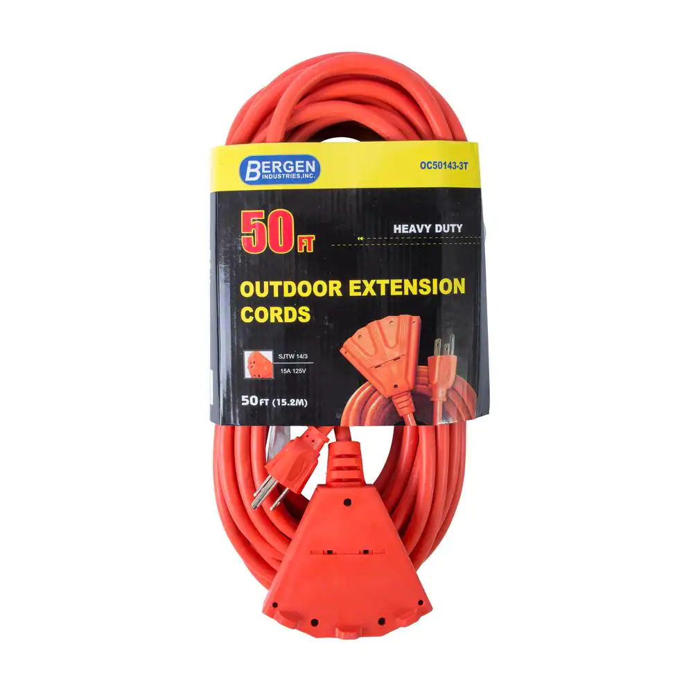 Bergen Industries 50 ft. 14/3 SJTW 15 Amp/125-Volt Outdoor Triple Tap Extension Cord, Orange