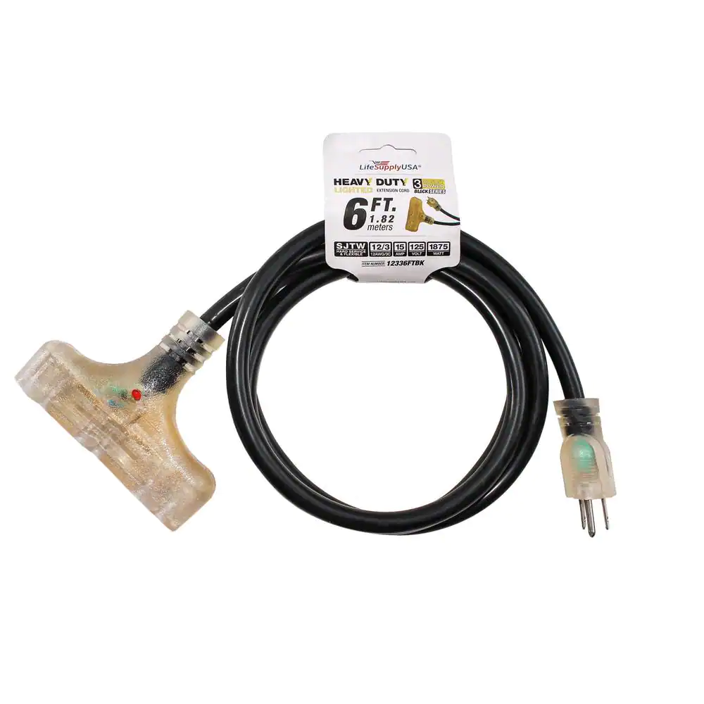 None 6 ft. 12/3 SJTW 3-Outlet 15 Amp 125-Volt 1875-Watt Indoor/Outdoor Black Heavy-Duty Tri-Source Extension Cord (2-Pack)