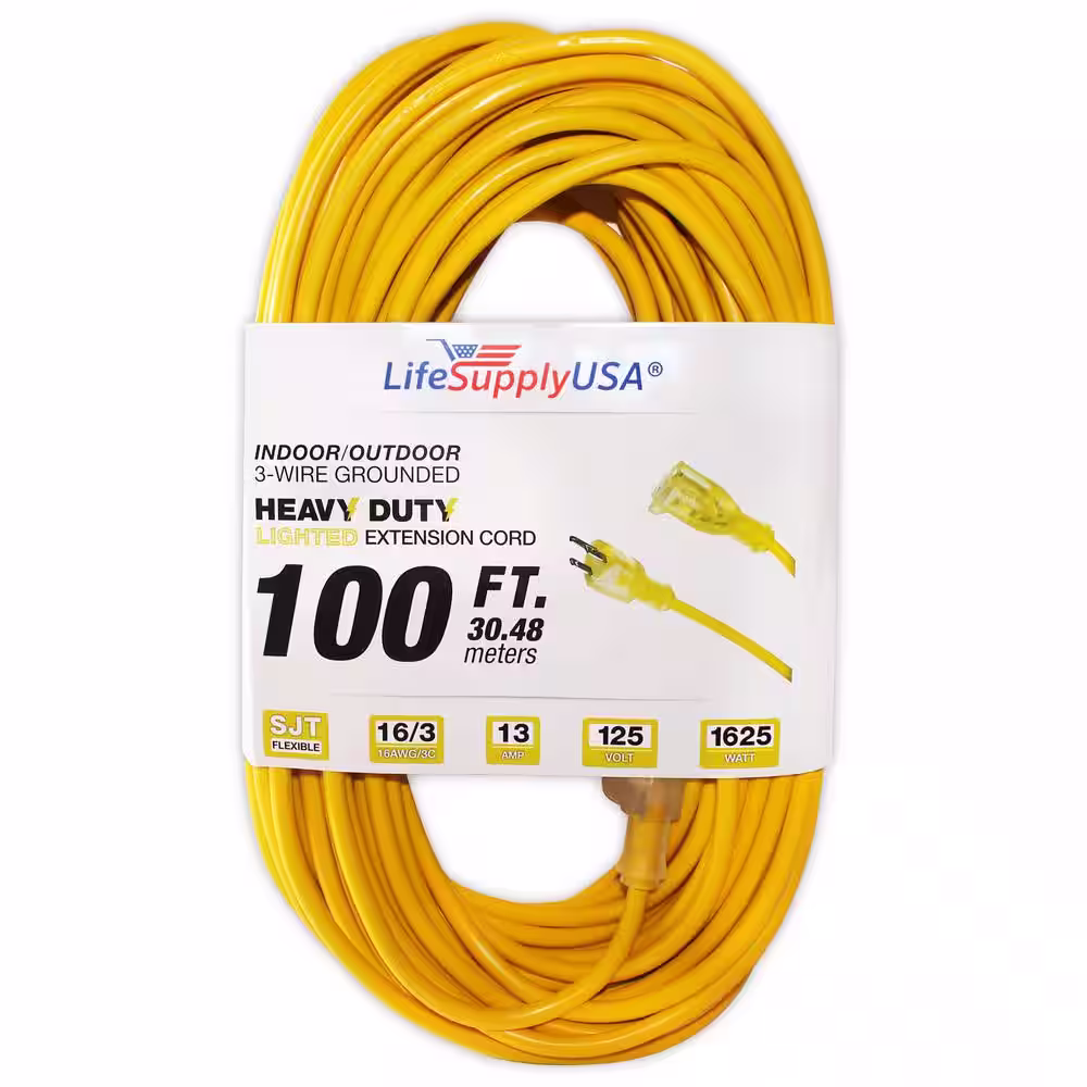 None 100 ft. 16/3 SJT 13 Amp 125-Volt 1625-Watt Lighted End Indoor/Outdoor Heavy-Duty Extension Cord (2-Pack)