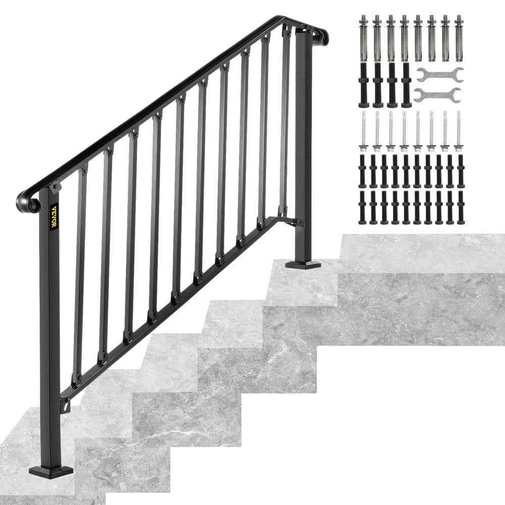 VEVOR 4 ft. Handrails for Outdoor Steps Fit 4 or 5 Steps Outdoor Stair Railing Wrought Iron Handrail with baluster