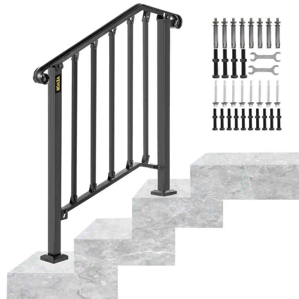 VEVOR 3 ft. Handrails for Outdoor Steps Fit 3 or 4 Steps Outdoor Stair Railing Wrought Iron Handrail with baluster