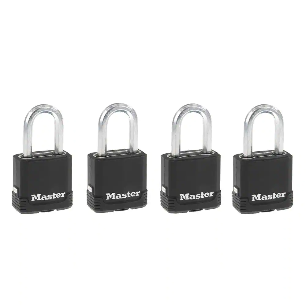 Master Lock Heavy Duty Outdoor Padlock with Key, 1-7/8 in. Wide, 1-1/2 in. Shackle, 4 Pack