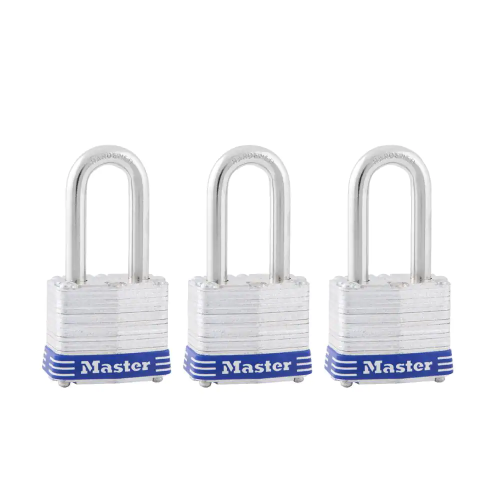Master Lock Outdoor Padlock with Key, 1-9/16 in. Wide, 1-1/2 in. Shackle, 3 Pack
