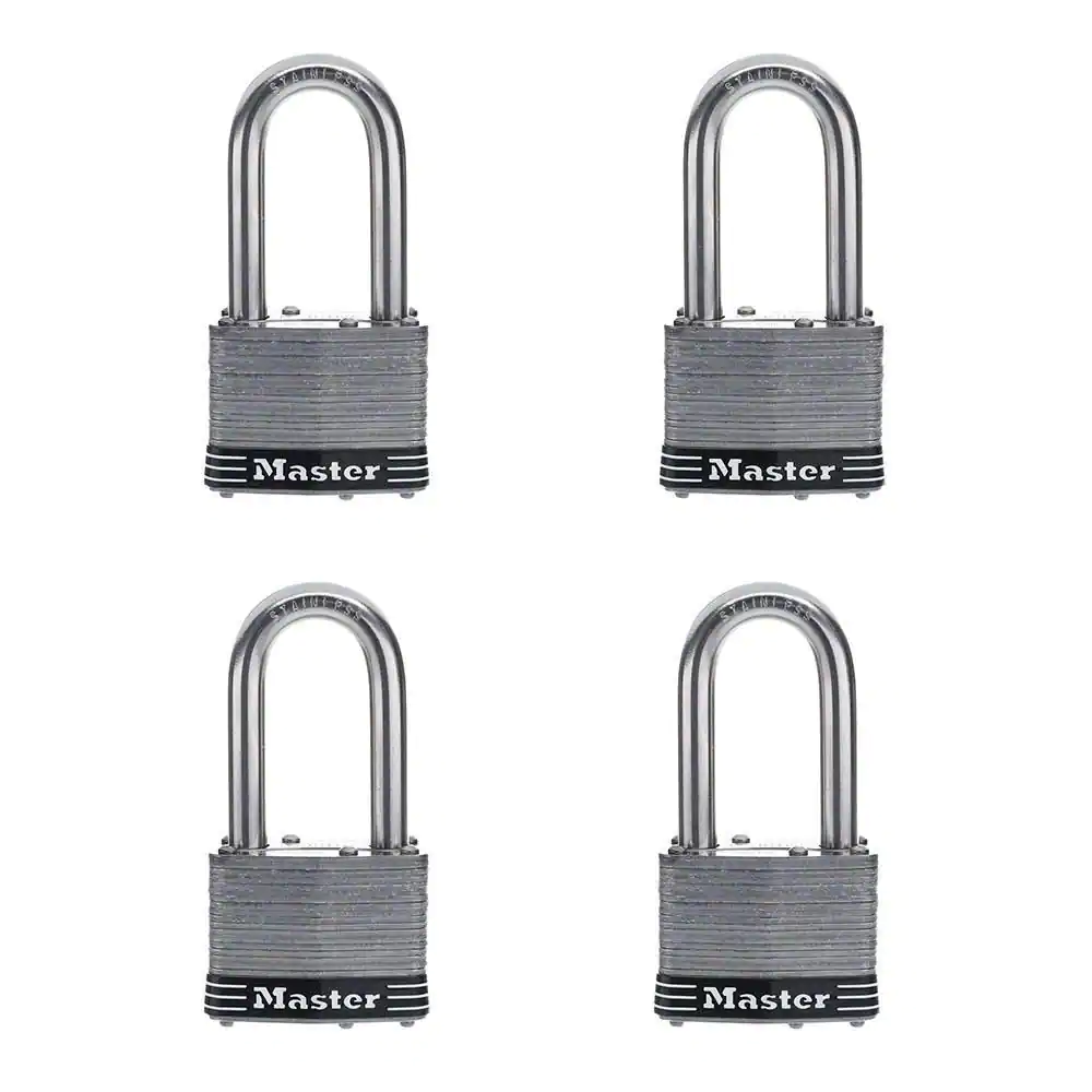 Master Lock Stainless Steel Outdoor Padlock with Key, 2 in. Wide, 2 in. Shackle, 4 Pack