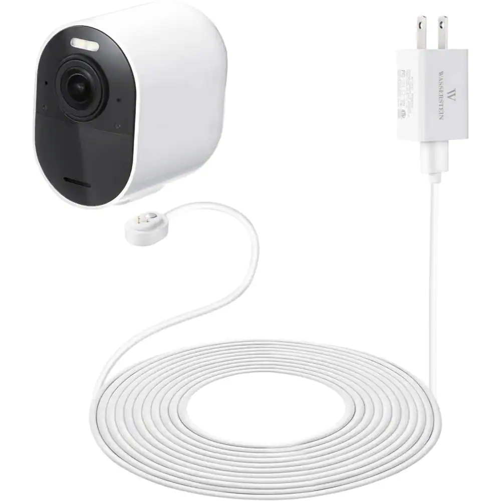 Wasserstein Arlo Ultra/Ultra 2 and Pro 3/Pro 4 Outdoor 6 ft. Magnetic Charging Cable with Quick Charge Power Adapter in White