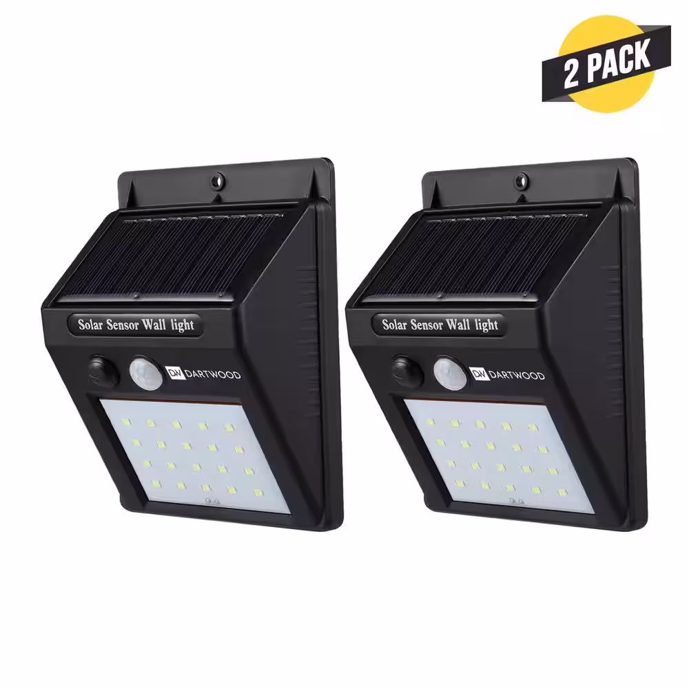 DARTWOOD Outdoor Solar Lights with Motion Sensor - 20 LED 150 Lumens Bright Wall Spotlight for Gardens Porches Patios (2 Pack)