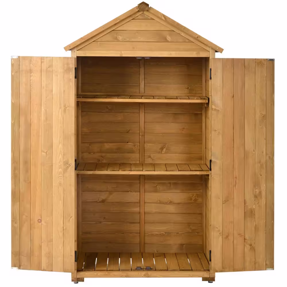 BTMWAY Natural 3 ft. W x 2 ft. D Wood Storage Shed with Double Door(5.5 sq.ft.)Lawn Outdoor Storage Cabinet with 3-Tier Shelves