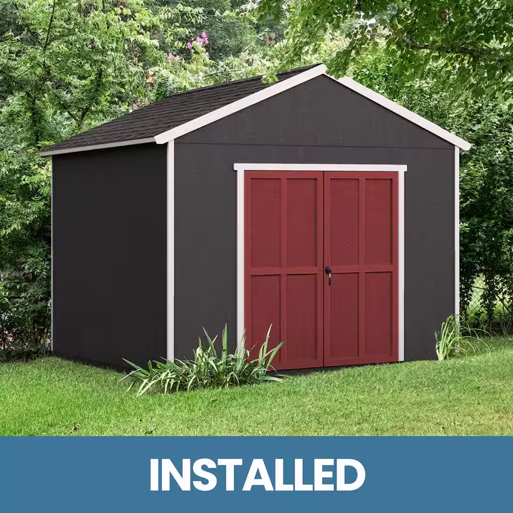 None Professionally Installed Rookwood 10 ft. x 14 ft. Outdoor Wood Storage Shed with Autmun Brown Shingles (140 sq. ft.)