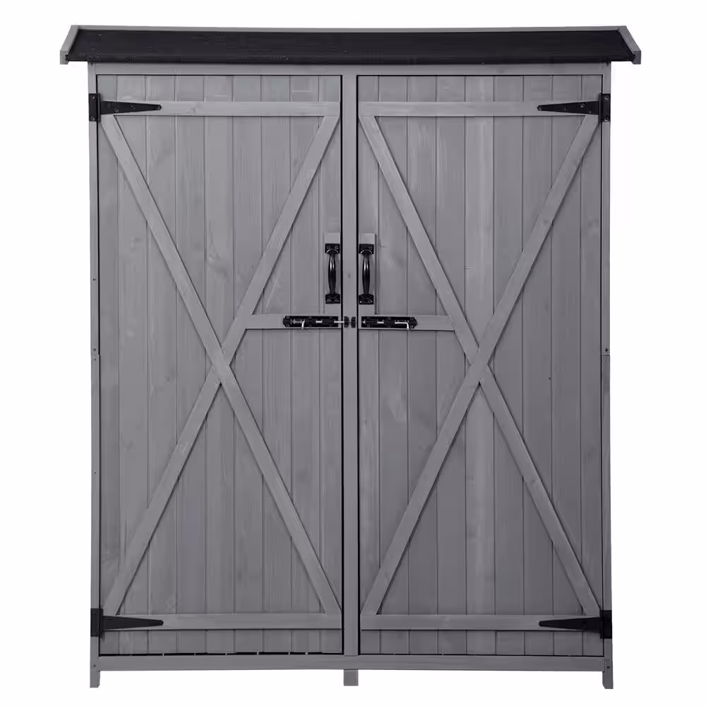 None 2 ft. W x 4.6 ft. D Wood Outdoor Storage Cabinet Shed for Backyard and Garden in Gray 9.2 sq. ft.