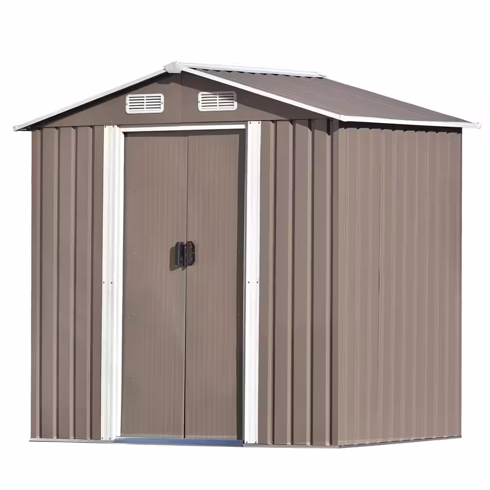 maocao hoom 4 ft. W x 6 ft. D . Metal Outdoor Storage Sheds with Lockable Door in Brown (24 sq. ft.)
