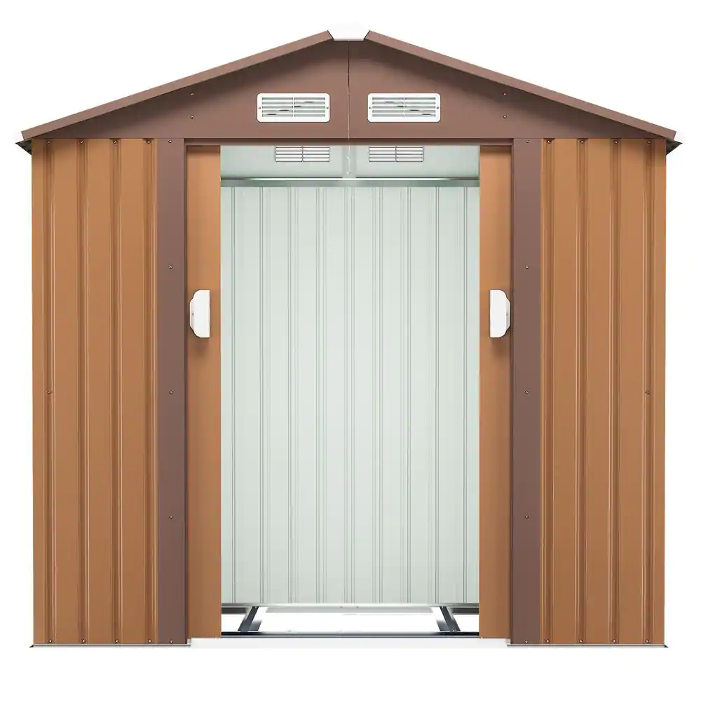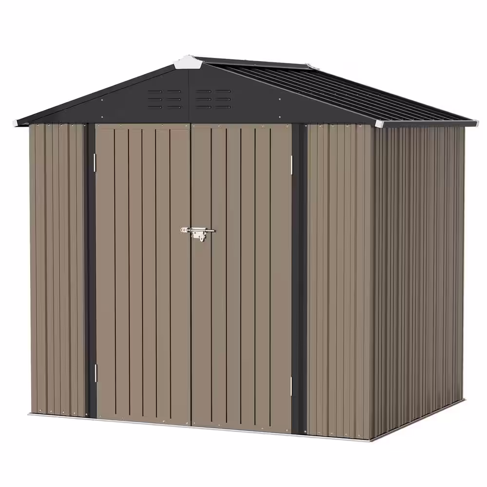 None 8 ft. W x 6 ft. D Outdoor Storage Brown Metal Shed with Sloping Roof (45 sq. ft.)