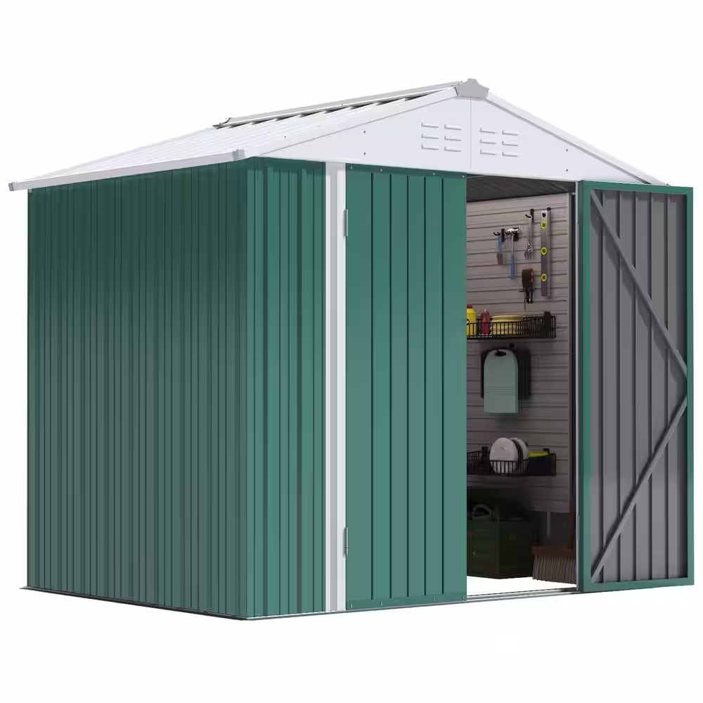 None 8 ft. W x 6 ft. D Outdoor Storage Metal Shed Utility Patio Shed for Garden and Backyard 48 sq. ft. in Green