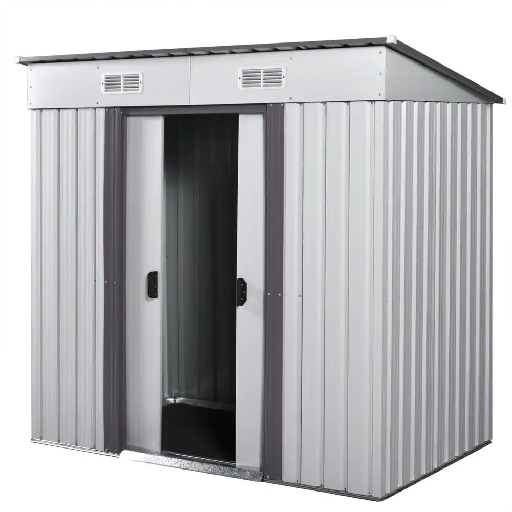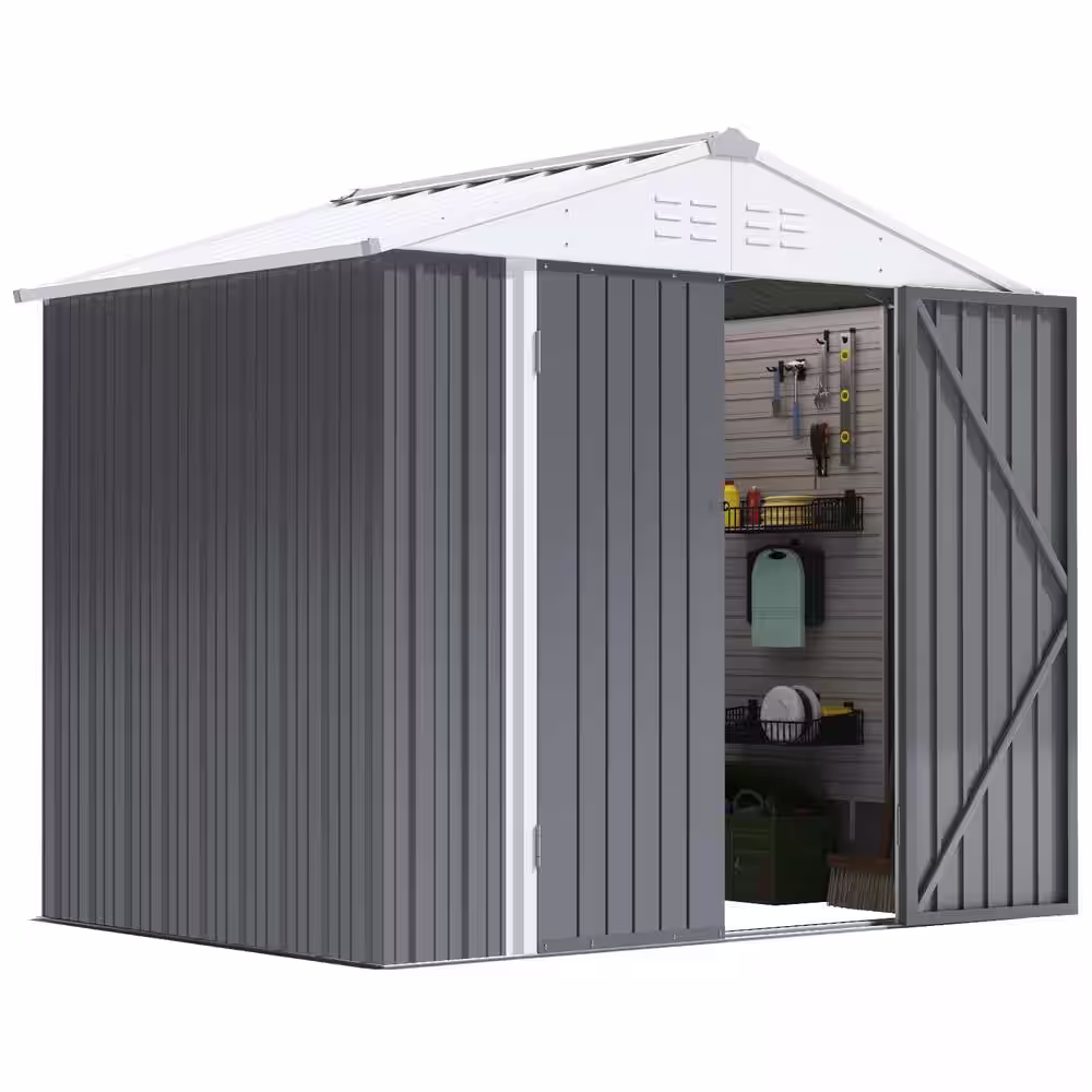 None 8 ft. W x 6 ft. D Outdoor Storage Metal Shed Utility Patio Shed for Garden and Backyard 48 sq. ft. in Gray