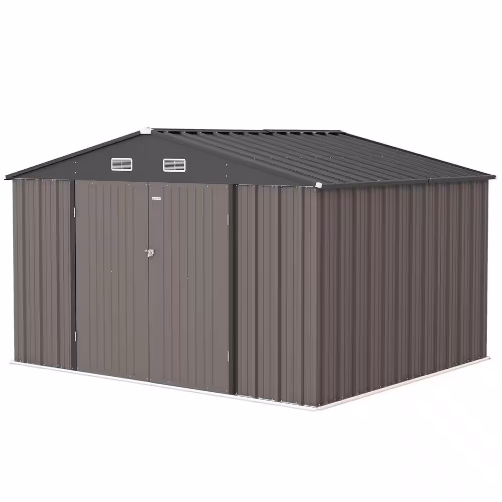 None 10 ft. W x 8 ft. D Size Upgrade Metal Storage Shed for Outdoor, Steel Yard Shed in Brown (85 sq. ft. )