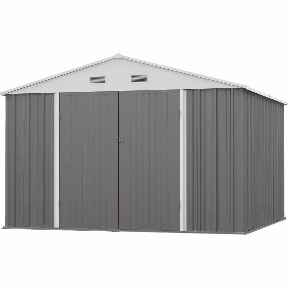 Patiowell 10 ft. W x 10 ft. D Metal Storage Shed for Outdoor, Steel Yard Shed with Design of Lockable Door (99 sq. ft.)