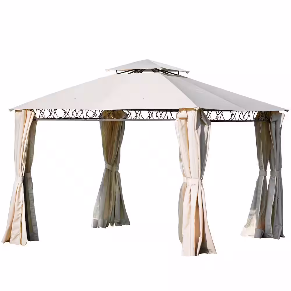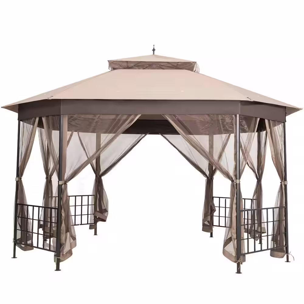 None 13 ft. x 9.7 ft. Khaki Outdoor Gazebo with Double Roof