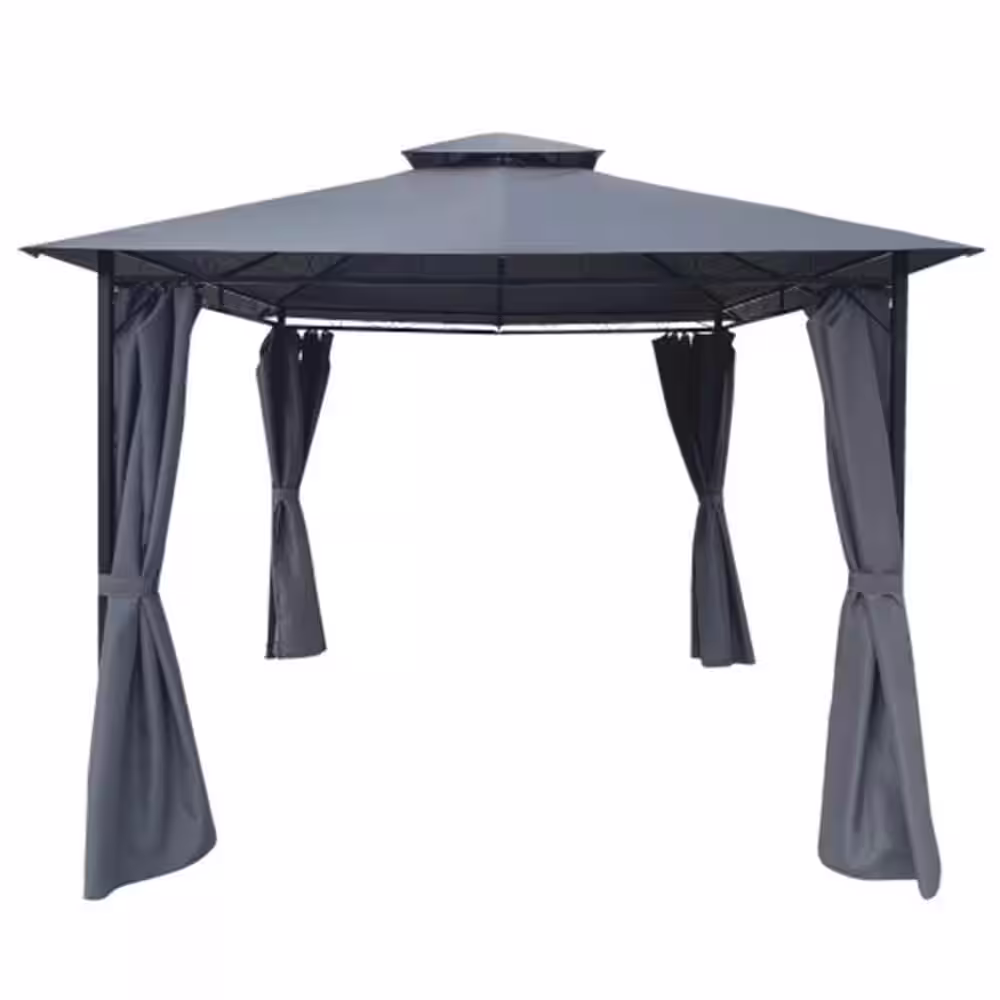 None 10 ft. x 10 ft. Dark Grey Outdoor Patio Garden Gazebo Tent, Outdoor Shading, Gazebo Canopy with Curtains