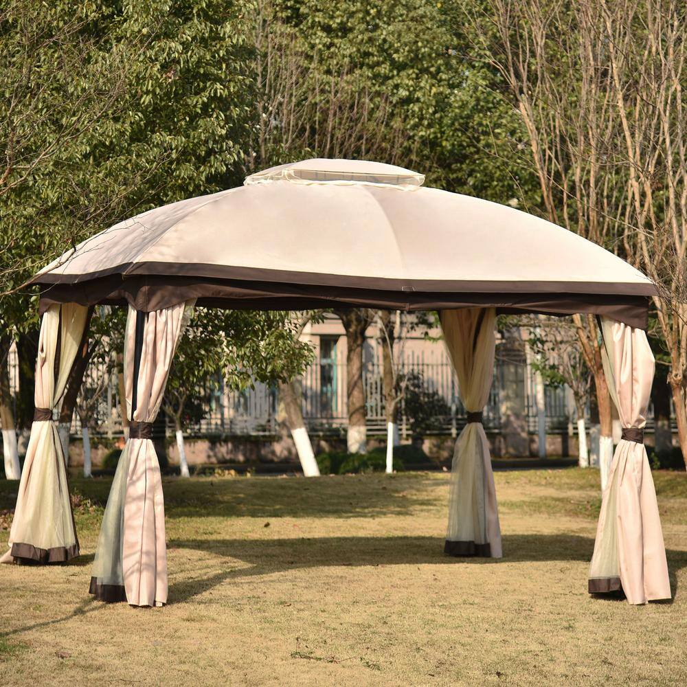 None 10 ft. x 12 ft. Khaki Aluminum Patio Outdoor Gazebo, Double Roof Soft Canopy