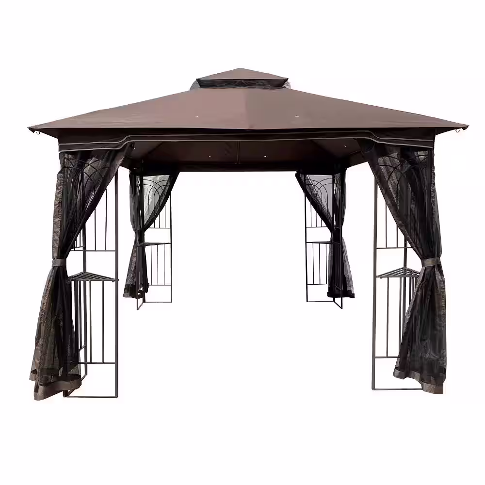None 10 ft. x 10 ft. Brown Outdoor Patio Gazebo Canopy Tent with Ventilated Double Roof and Detachable Mosquito Net
