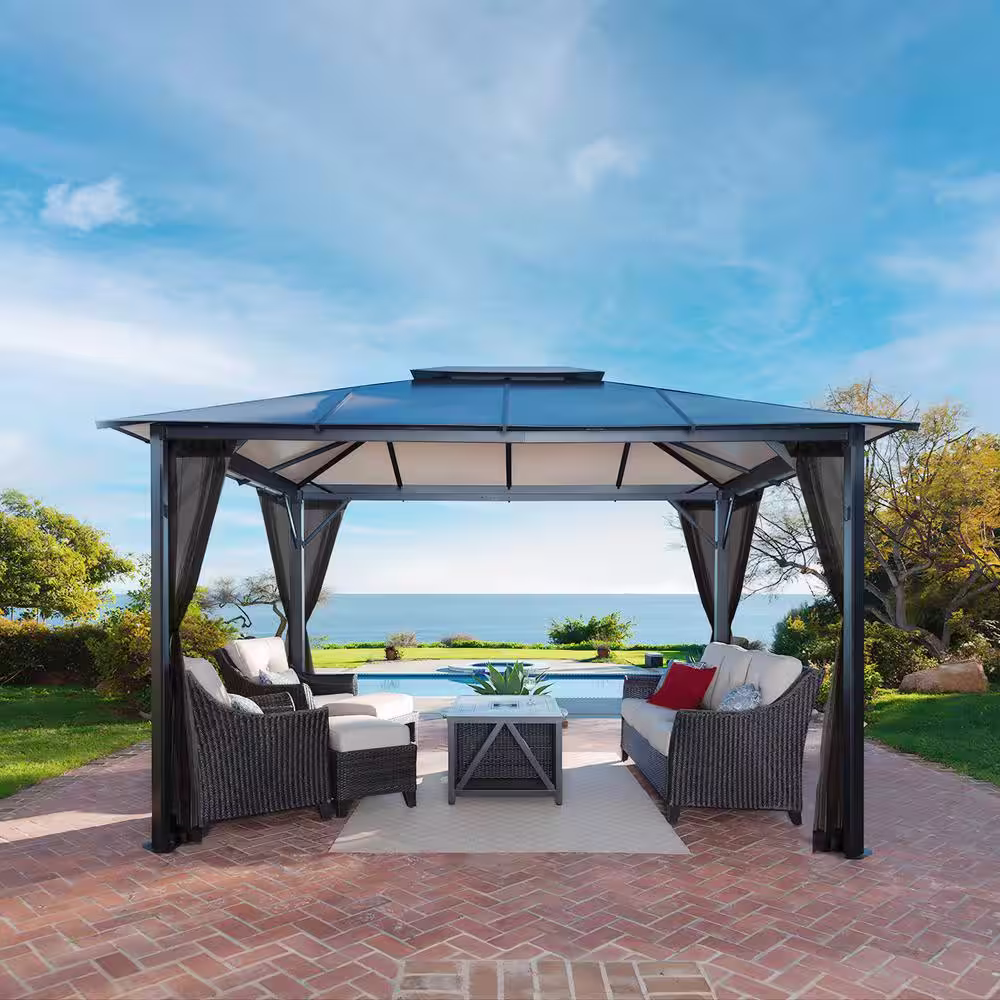 Paragon Outdoor Durham 11 ft. x 13 ft. Aluminum Hard Top Gazebo with Mosquito Netting
