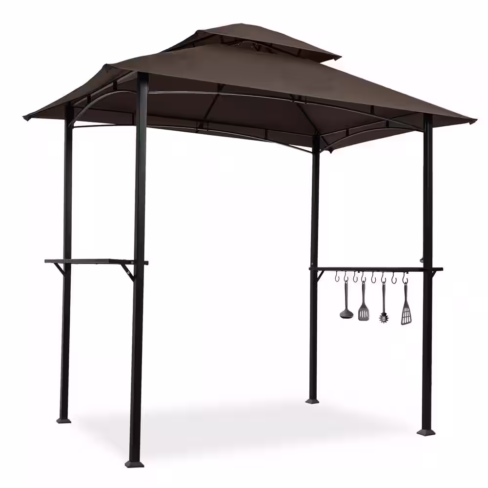 None 8 ft. W x 5 ft. D Brown Outdoor Grill Gazebo Shelter Tent, Double Tier Soft Top Canopy and Steel Frame