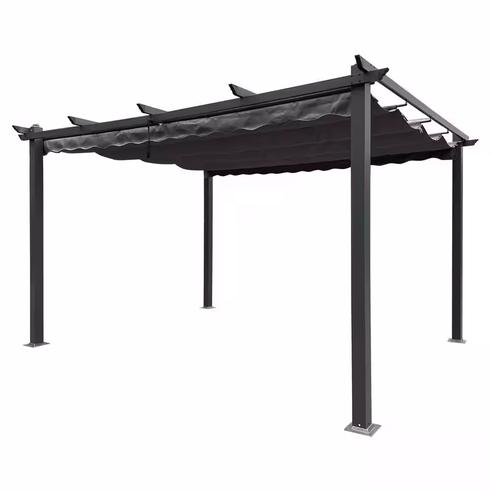 Anvil 10 ft. x 13 ft. Outdoor Patio Retractable Gray Pergola with Canopy Sun shelter Pergola for Gardens, Terraces, Gray