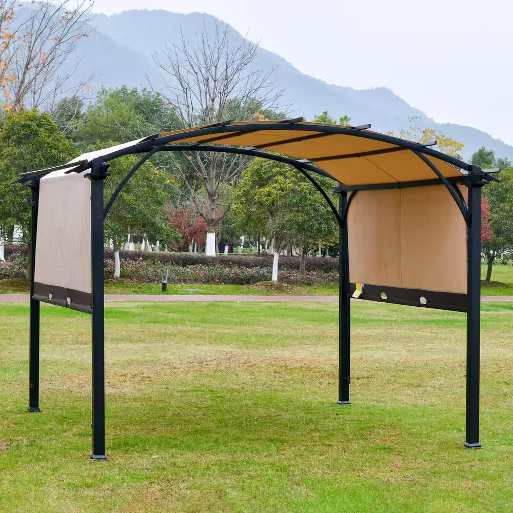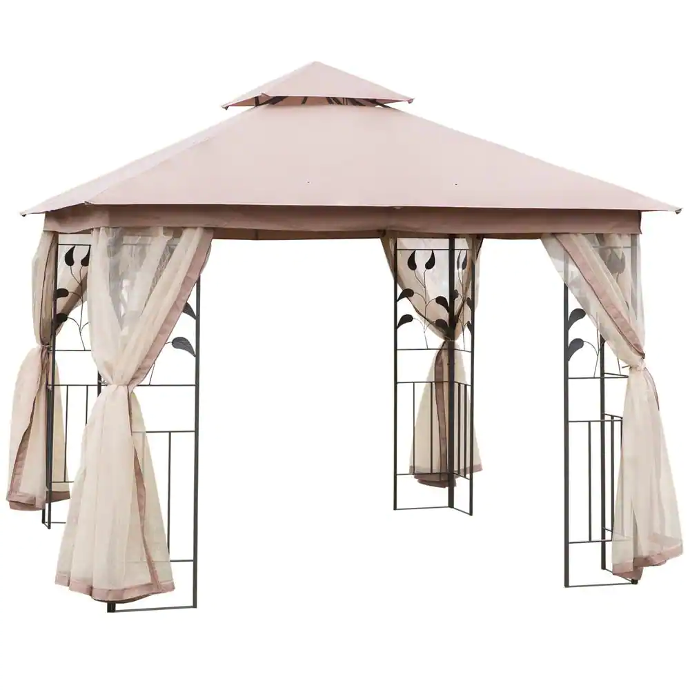 Outsunny 10 ft. x 10 ft. x 8.7' ft Steel Frame Rectangle Outdoor Gazebo with Mesh Curtain Sidewalls & 2-Tiered Vented Top, Brown