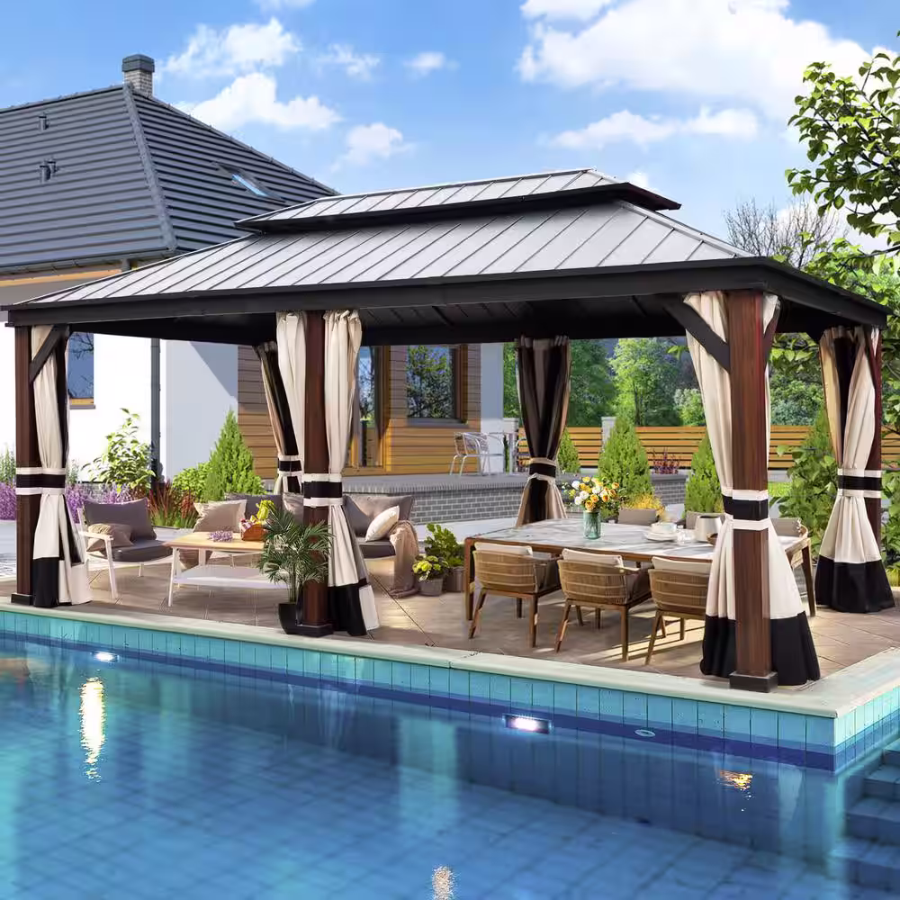 None Spruce Wood 13 ft. x 11 ft. Outdoor Patio Hardtop Gazebo with Double Galvanized Steel Roof and Mosquito Netting