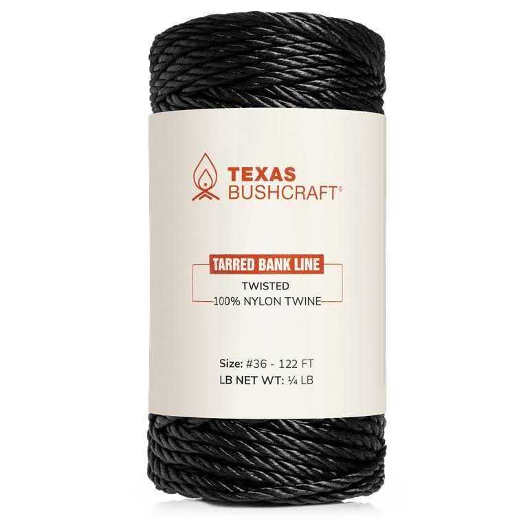 Texas Bushcraft Tarred Bank Line Twine #36 Black Nylon String for Fishing, Camping and Outdoor Survival