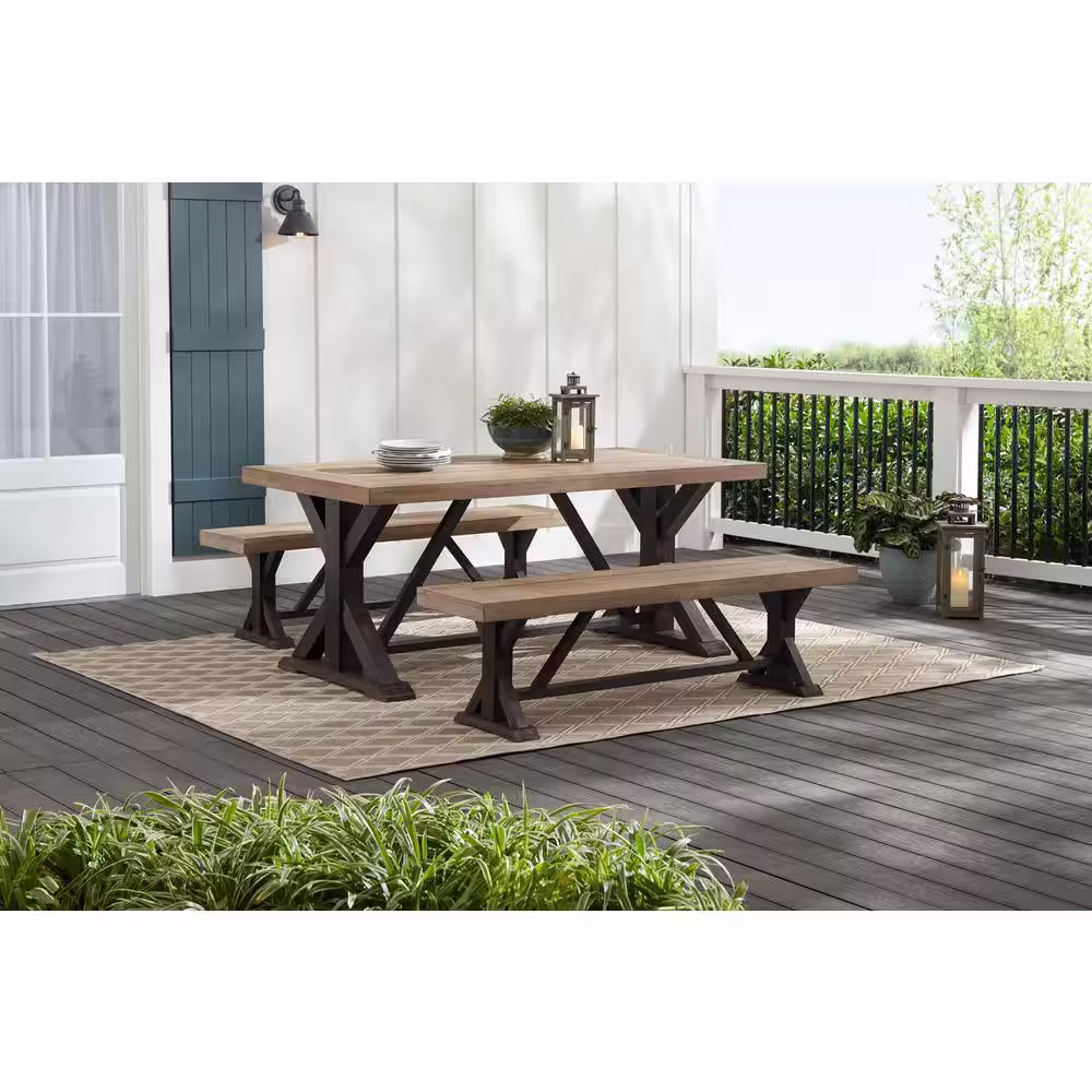 Hampton Bay Silver Oaks Farmhouse 3-Piece Acacia Wood Outdoor Patio Dining Set
