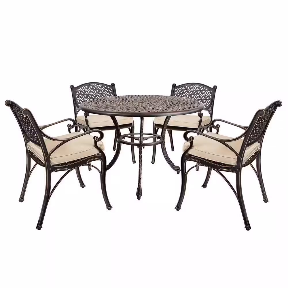 None Harmon Antique Bronze 5-Piece Cast Aluminum Outdoor Dining Set for Patio with Beige Cushions