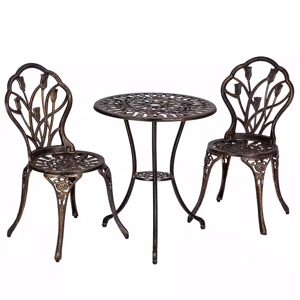 None 3-Piece Aluminum Outdoor Bistro Set Rust-Proof Outdoor Furniture Set