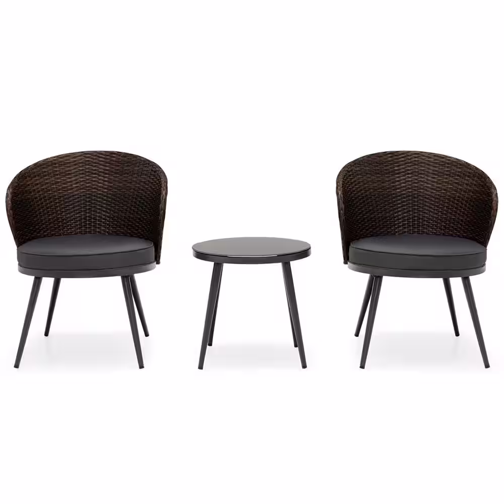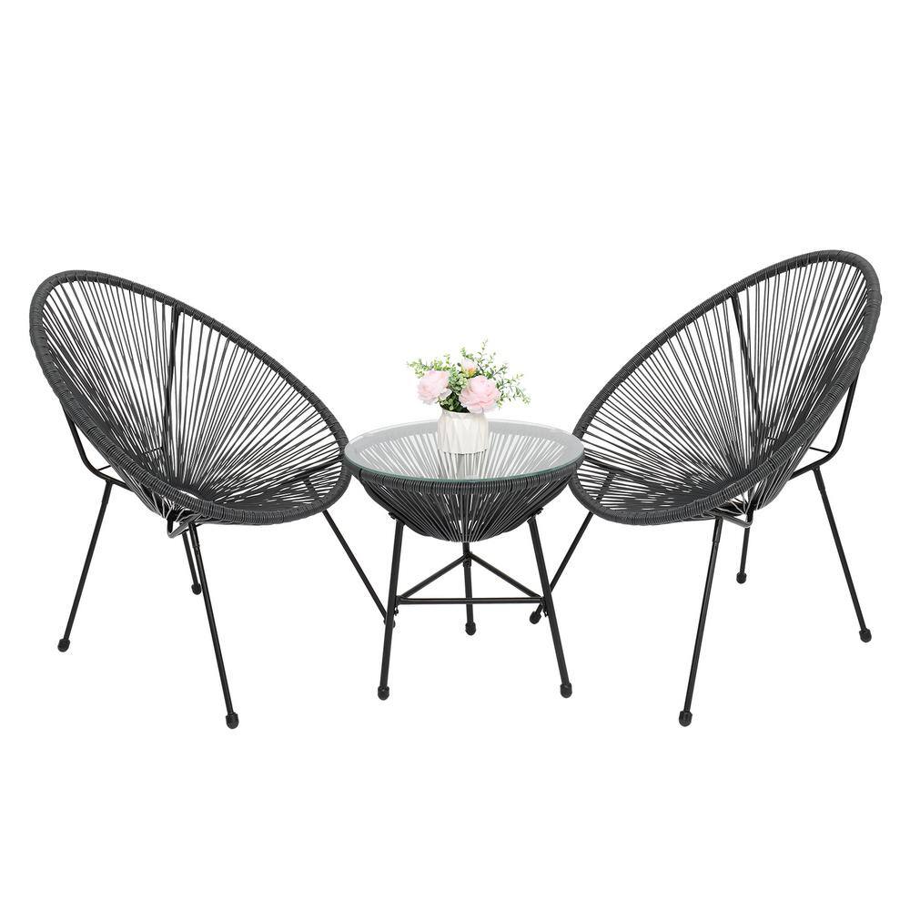 None Gray 3-Piece Wicker Round Table Outdoor Bistro Set Outdoor Acapulco Chair Set