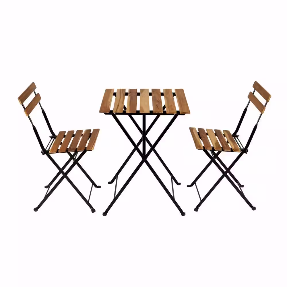 Lavish Home Brown 3-Piece Acacia Wood and Steel Square Table Outdoor Bistro Set