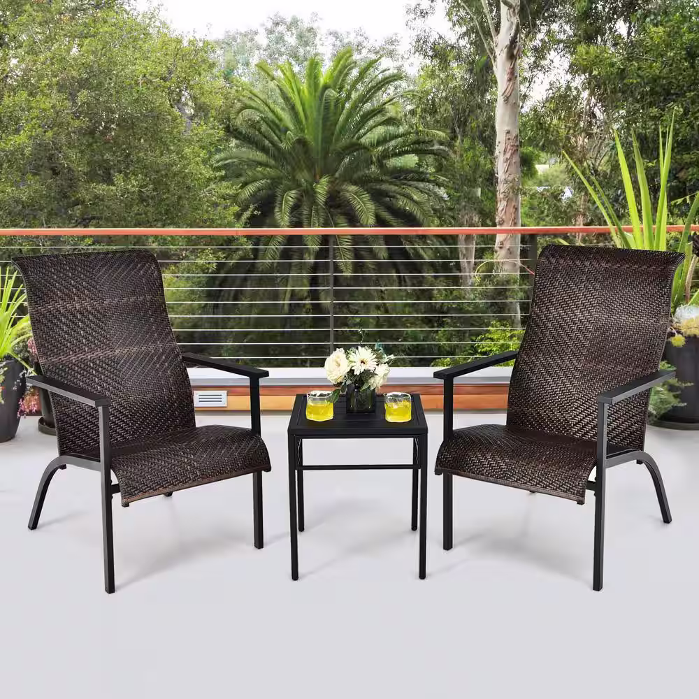ANGELES HOME 3-Piece Wicker PE Rattan Outdoor Bistro Set with High Backrest and Armrest
