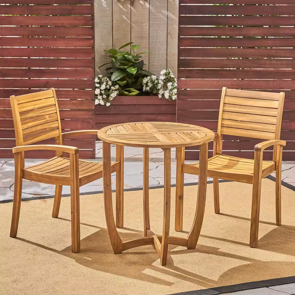 Noble House Waverly Teak Brown 3-Piece Wood Outdoor Bistro Set