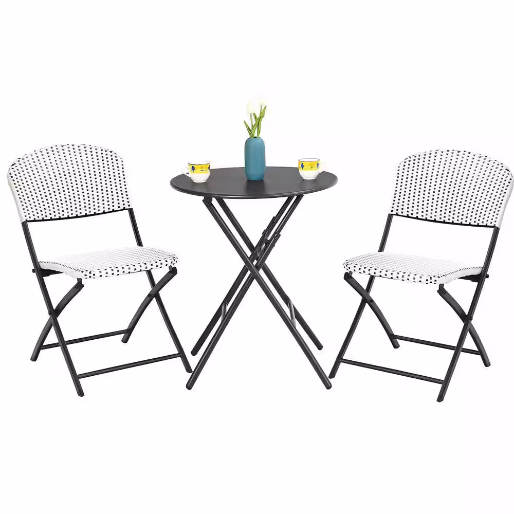 Alpulon Wicker Outdoor 3-Piece Patio Bistro Set with Round Dining Table and 2-Chairs in White