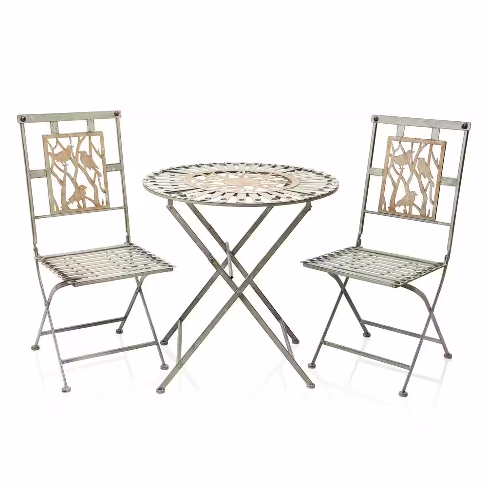 Alpine Corporation Indoor/Outdoor Bird Design 3-Piece Iron Bistro Set Folding Table and Chairs Patio Seating