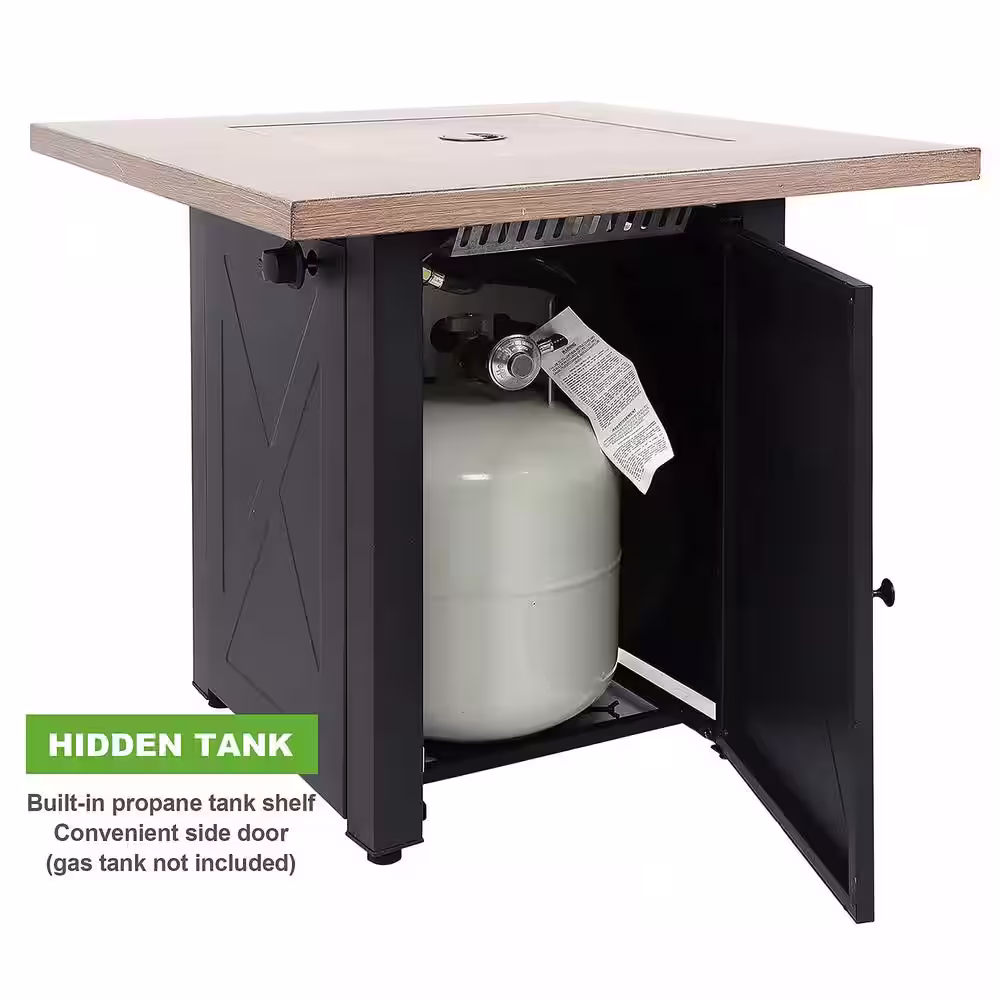 None 28 in. 48,000 BTU Outdoor Gas Fire Pit Table, Square Outdside Propane Patio Firetable, Bionic Wood Grain Lid