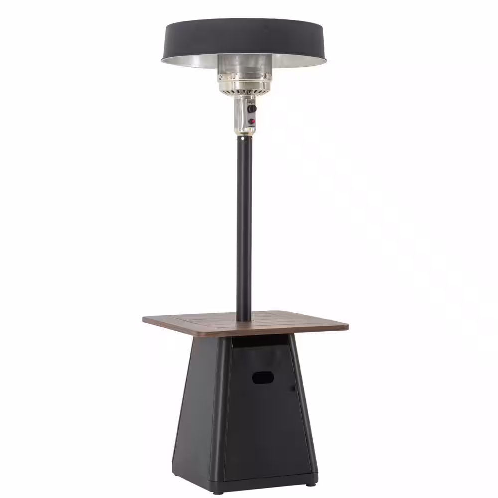 Sunjoy Cafe 40000 BTU Matte Black Steel Frame Outdoor Patio Propane Gas Heater with Table Top