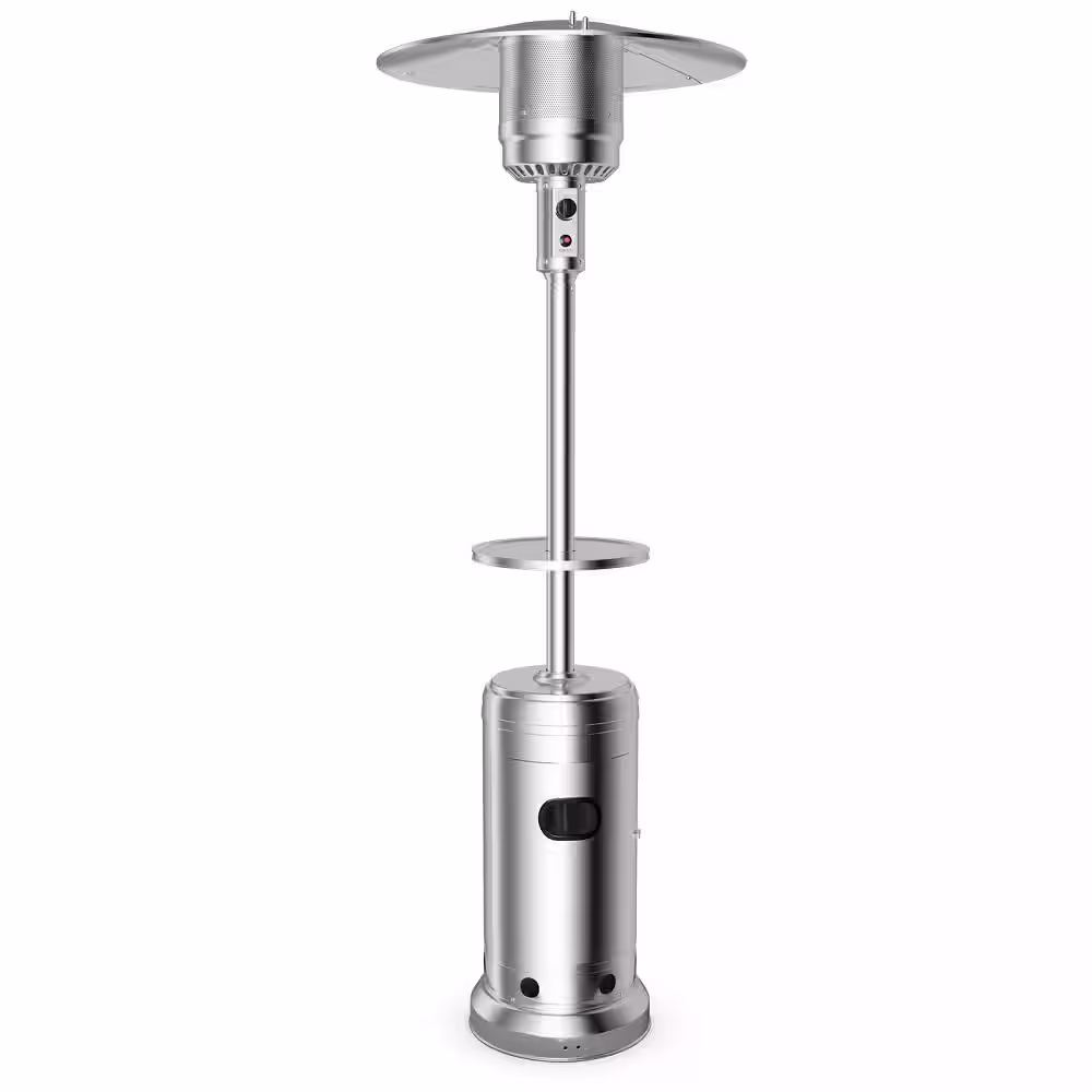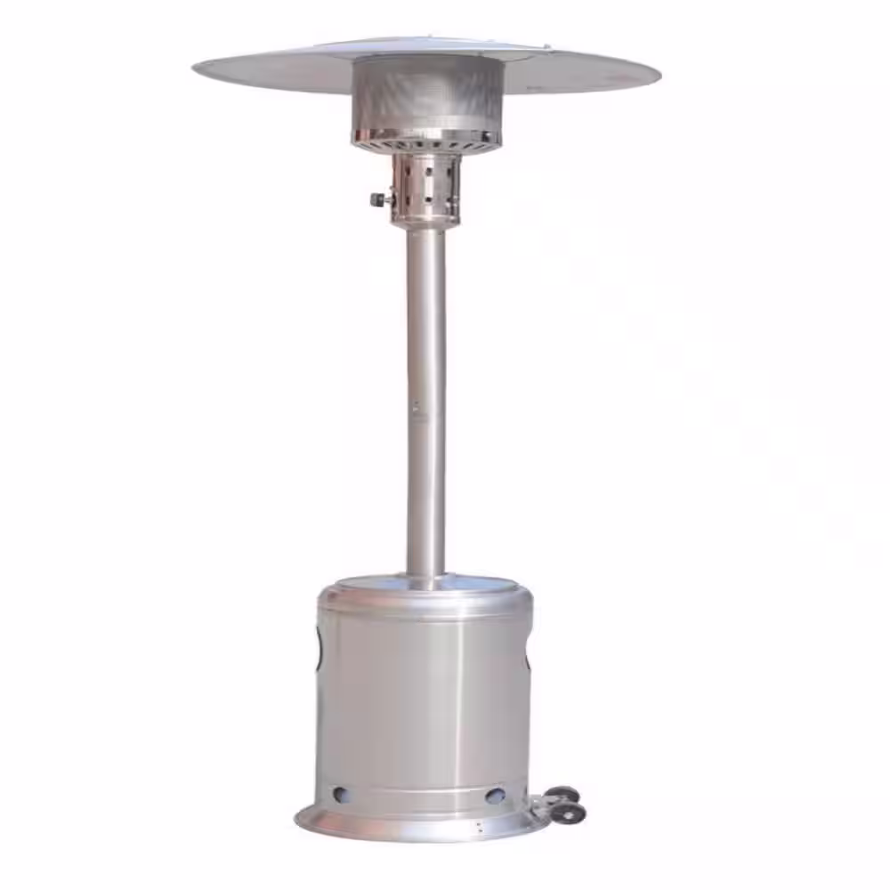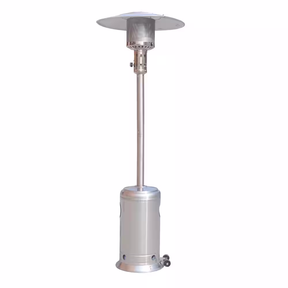 None 47,000 BTU Silver Stainless Steel Outdoor Patio Propane Heater with Portable Wheels